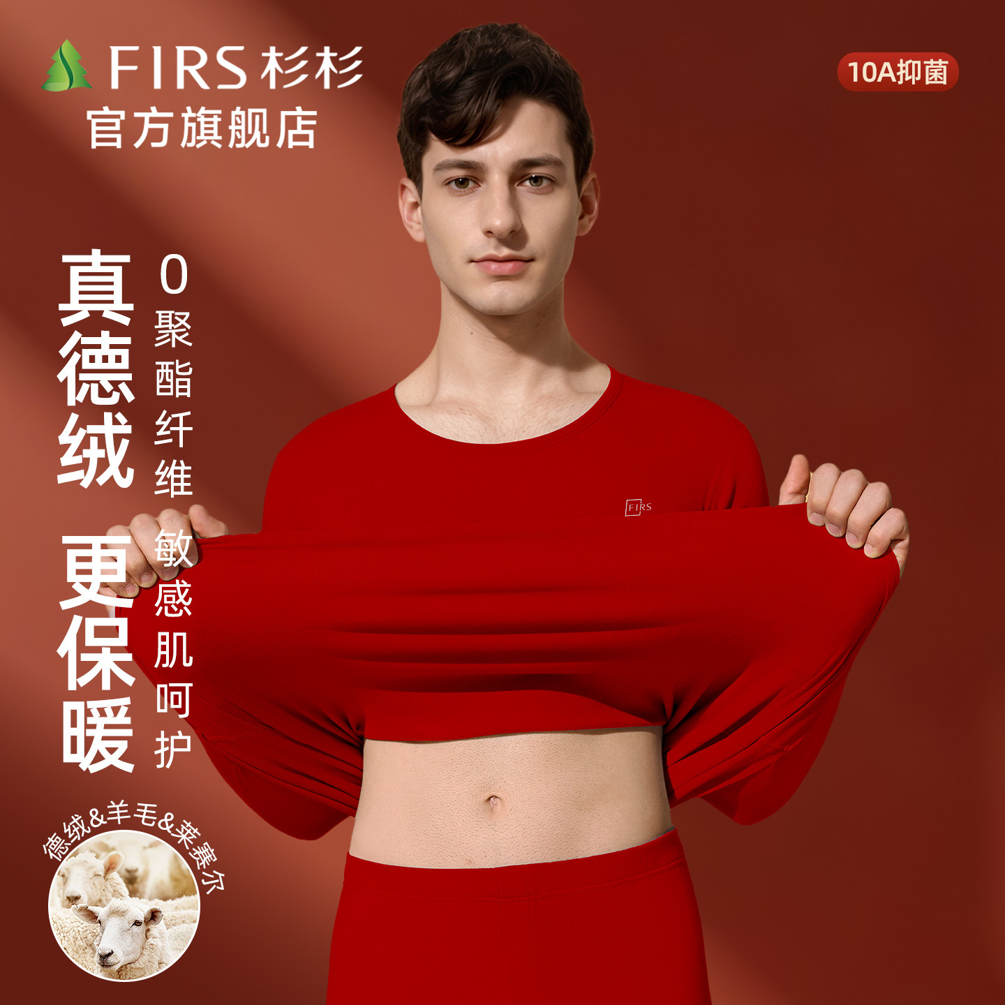 杉杉德绒羊毛保暖内衣男加绒加厚2025新款秋衣秋裤红色本命年套装