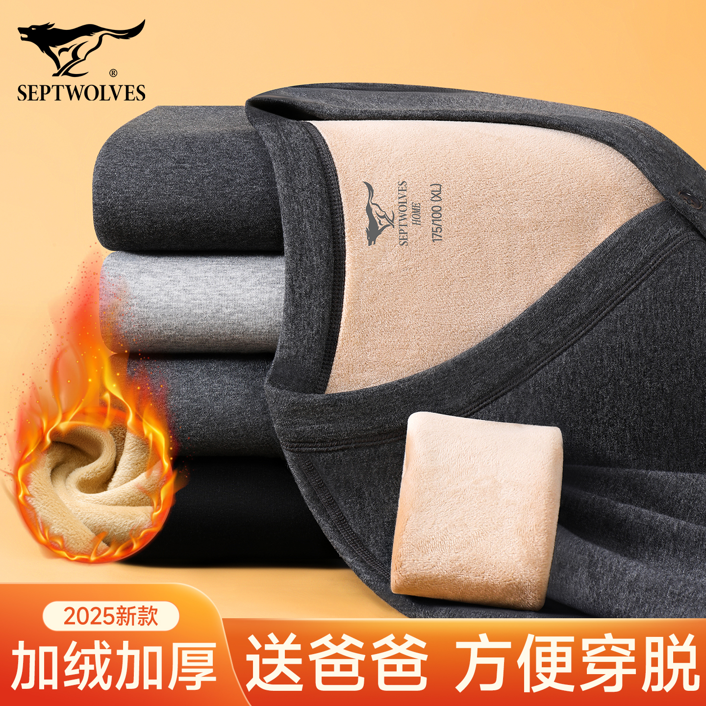 七匹狼秋衣秋裤套装保暖内衣男加绒加厚2025新款中老年人爸爸冬季