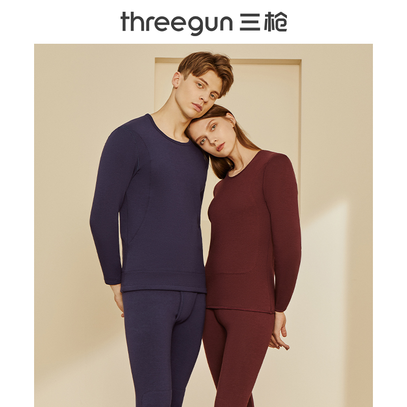 三枪羊毛蚕丝保暖内衣男加绒加厚护膝贴块棉毛衫裤女秋衣秋裤秋冬