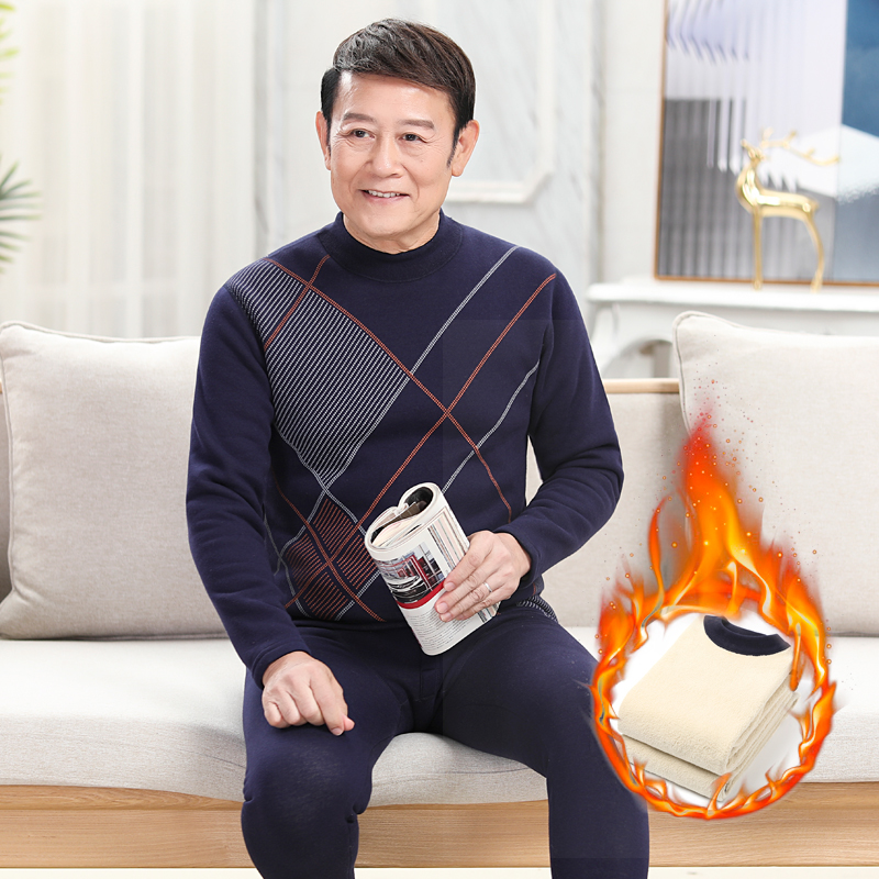 中老年人男士保暖内衣男加绒加厚超厚高领防寒秋衣秋裤套装冬季女