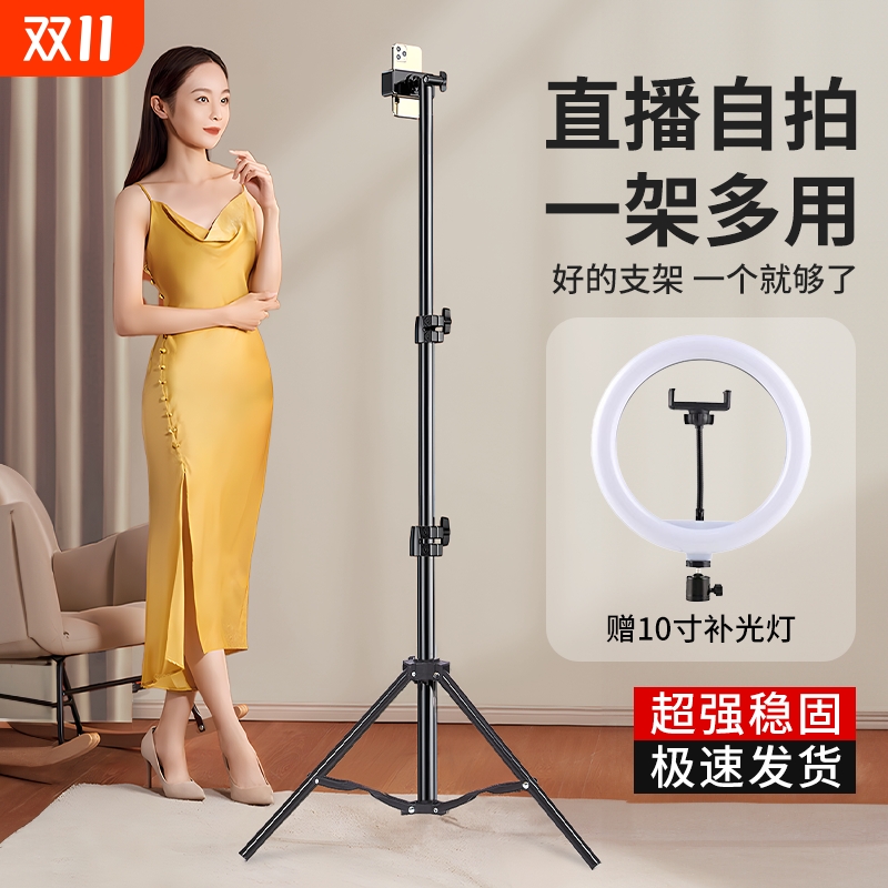 手机直播支架自拍杆三脚架带补光灯户外便携拍摄专用神器架子通用视频落地2025新款拍照桌面抖音俯拍一个人拍