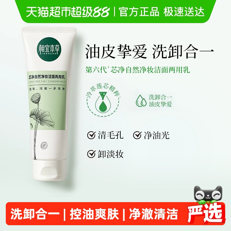 相宜本草芯净自然洁面乳女士卸妆清洁两用男士去油控油专用洗面奶