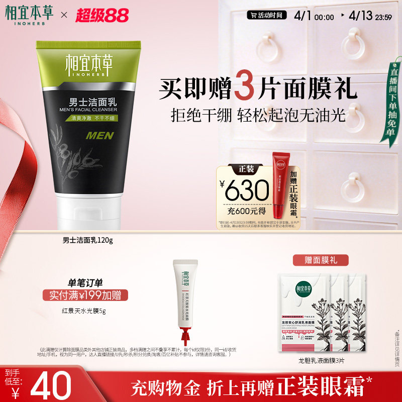 相宜本草洗面奶男士控油清爽清洁专用氨基酸洁面乳旗舰店官方正品