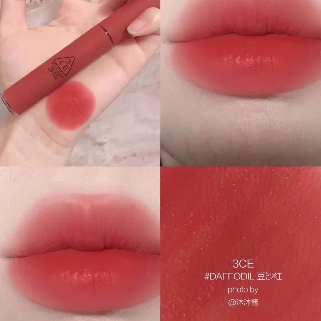水7家 现货 3ce韩国丝绒哑光液体口红 豆沙西柚姨妈红色雾面口红