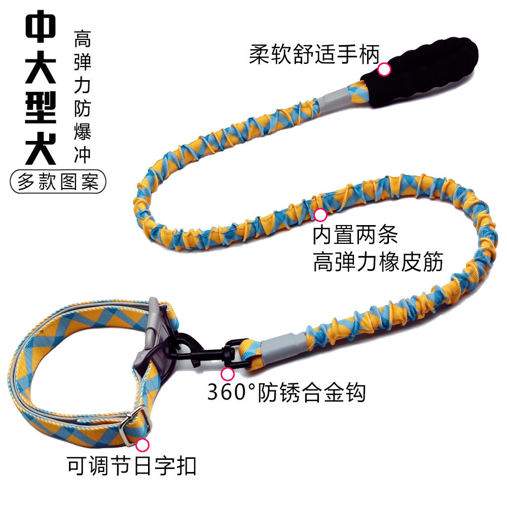 狗狗弹力牵引绳防爆冲遛狗绳狗脖圈缓冲狗链中大型犬金毛伸缩狗绳