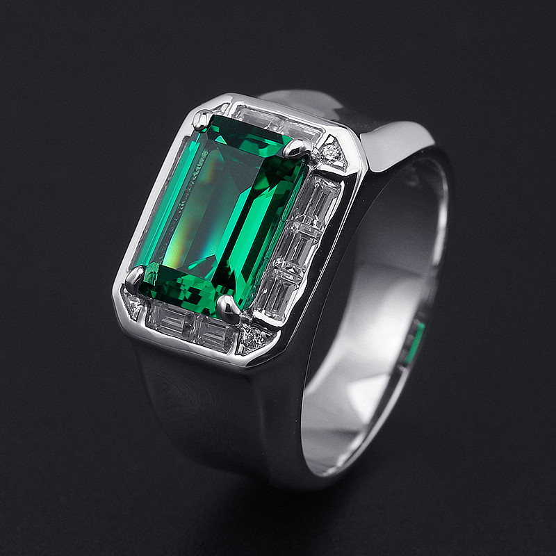 祖母绿碧玺色绿宝石纯银镀金戒指男简约个性潮单身戒定制铂金刻字
