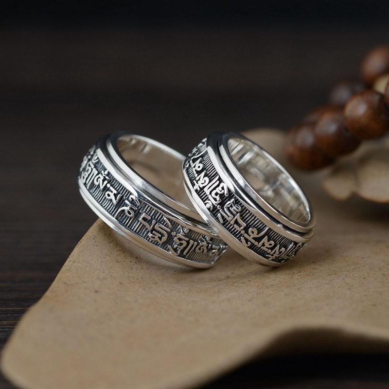 纯银999可转动六字真言男女戒指潮食指男生创意解压个性男戒单身