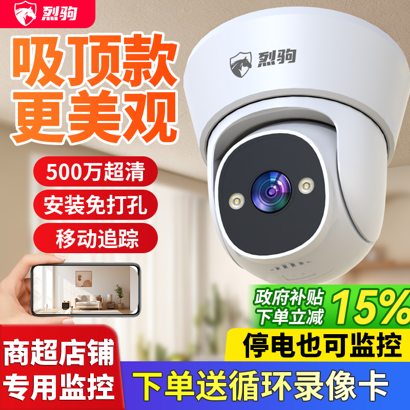 吸顶摄像头监控器店铺商用家用室内户室外WIFI门口监控5G手机远程360度无死角无线智能高清夜视摄影机录像机