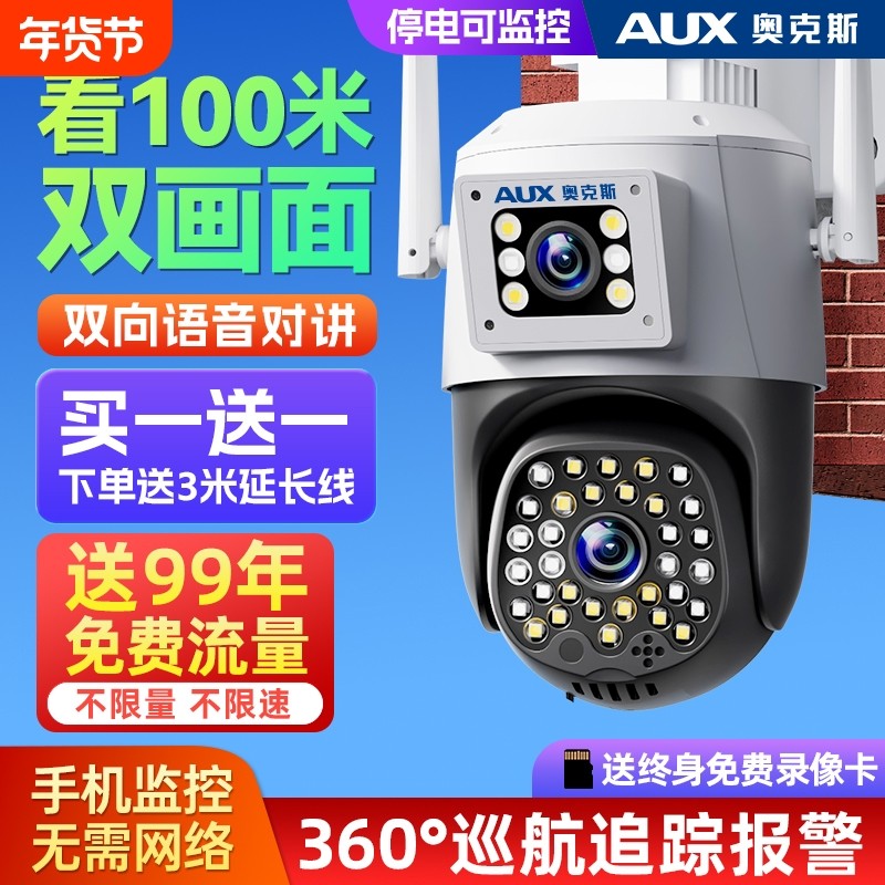 奥克斯智能双摄像头监控家用远程手机360度无死角室外防水店铺