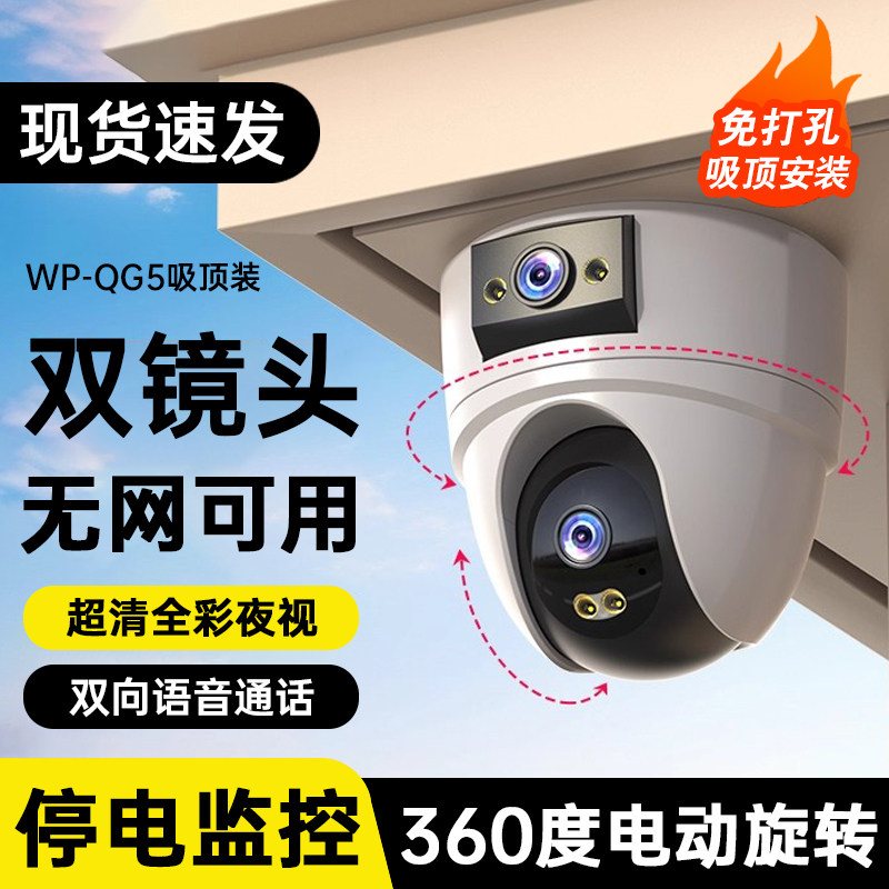 家用店铺摄像头360度双摄监控家庭360度不用wifi网络无线4G免流量