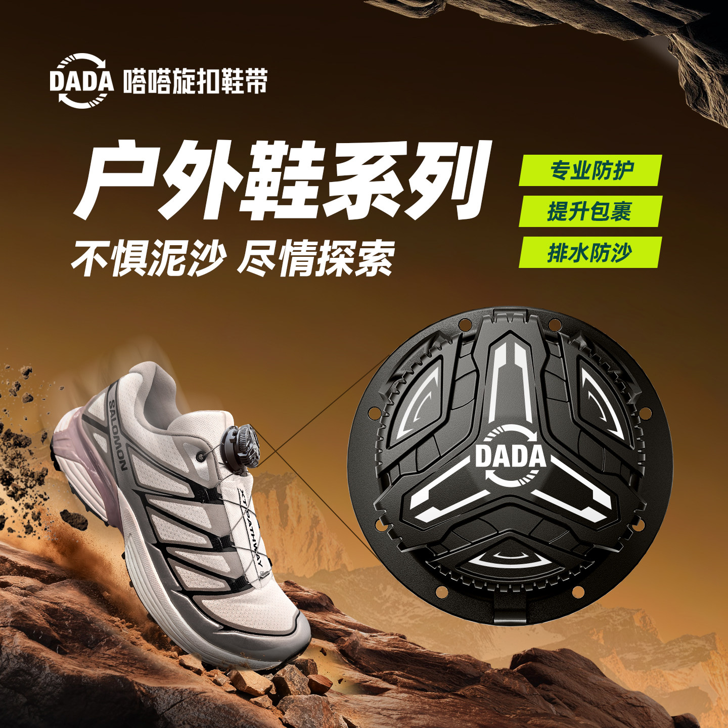 嗒嗒旋扣鞋带户外徒步登山旋钮扣防水山地免系旋转运动鞋带男女款