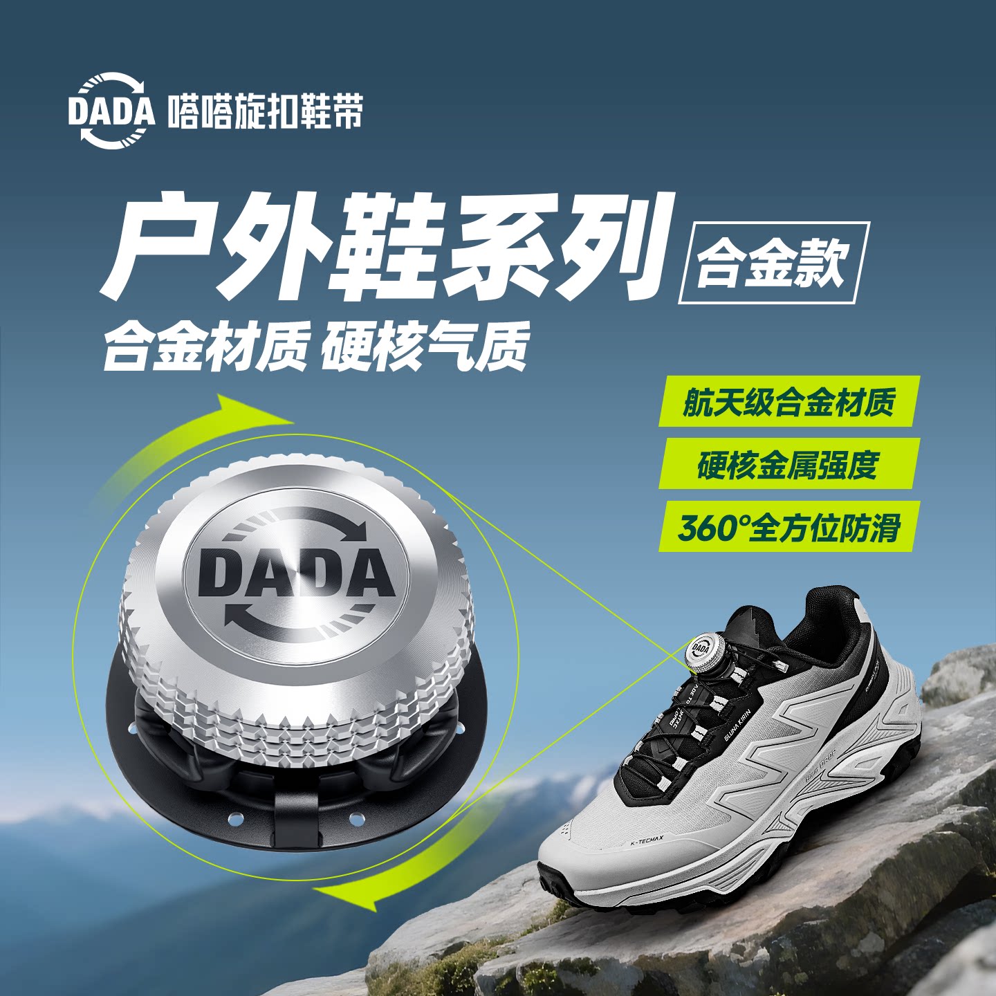 嗒嗒旋扣26年新品质感合金旋钮户外免系鞋带越野旋转运动男女鞋扣
