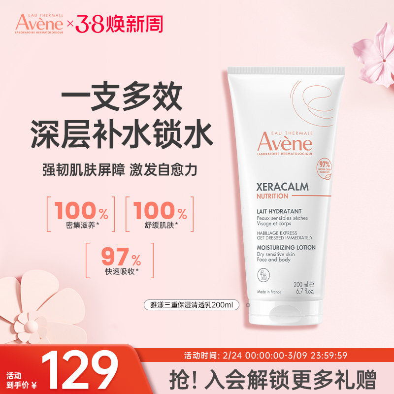 【38节立即购】雅漾恒润水乳精华套装滋润爽肤水小蛮腰乳液敏感肌
