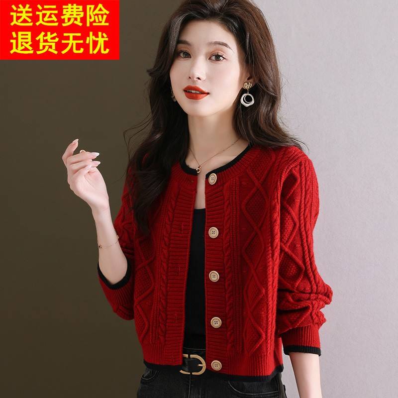 - 大红色毛衣女套头宽松