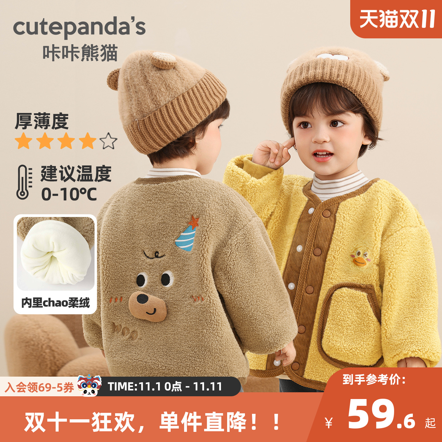 咔咔熊猫儿童外套冬季男童加绒厚童装女童小婴儿冬装宝宝上衣棉服