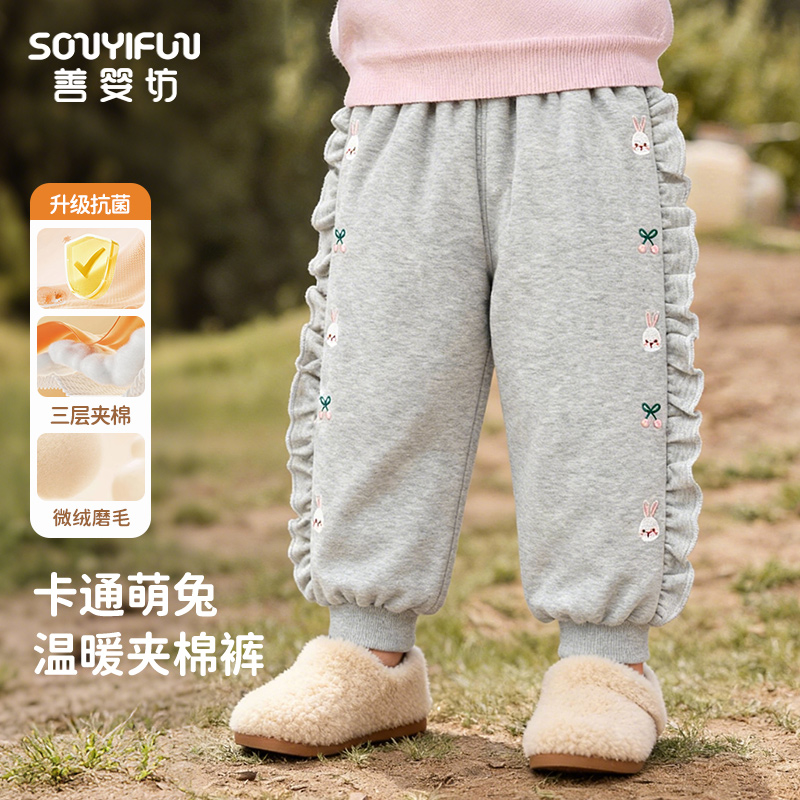 班喜迪女童裤子秋冬款2025新款宝宝加绒休闲裤婴儿冬装儿童束脚裤