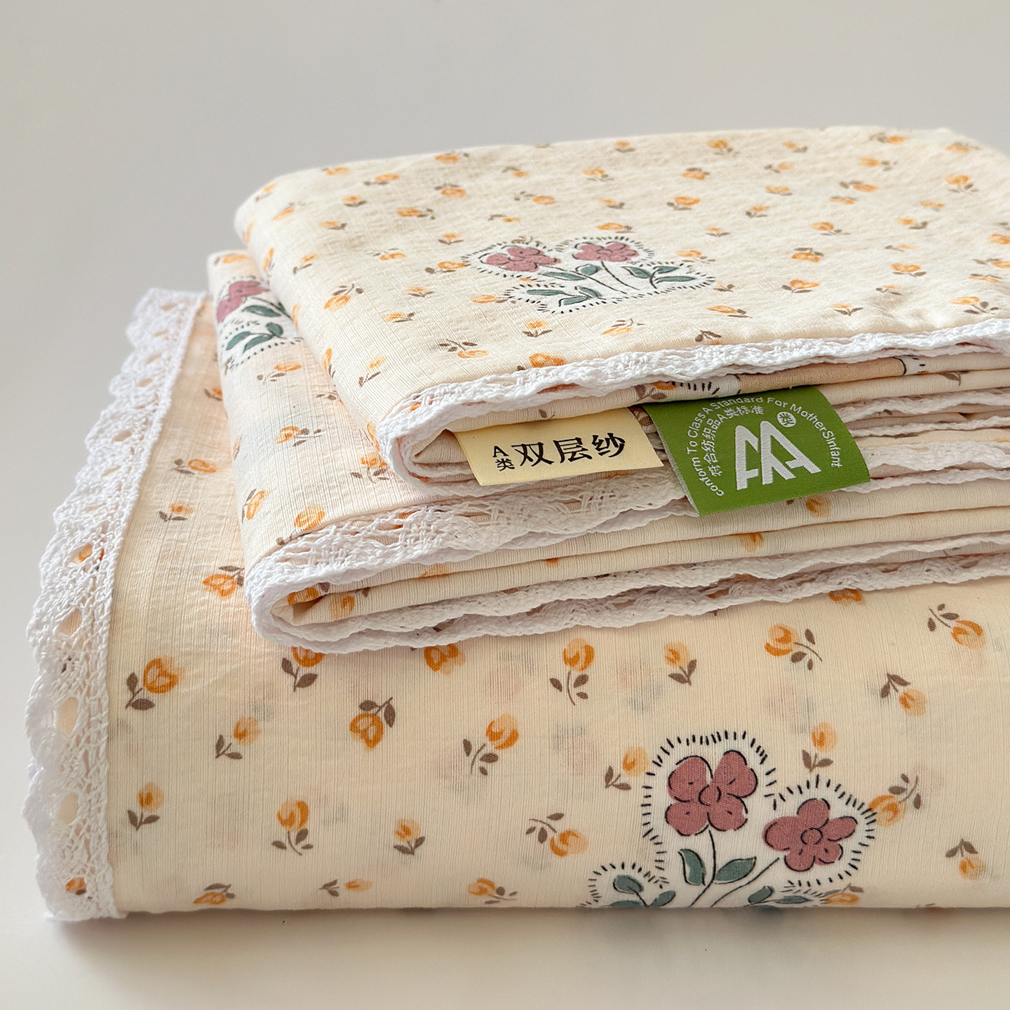 A类母婴级双层纱小花边单独床单单件被单枕套三件套宿舍单人夏季