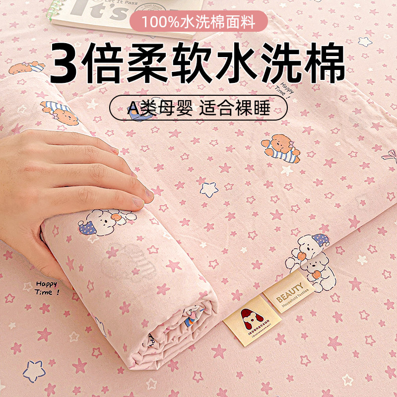 2024新款A类母婴级水洗棉单人床单单件被单三件套纯棉100全棉磨毛