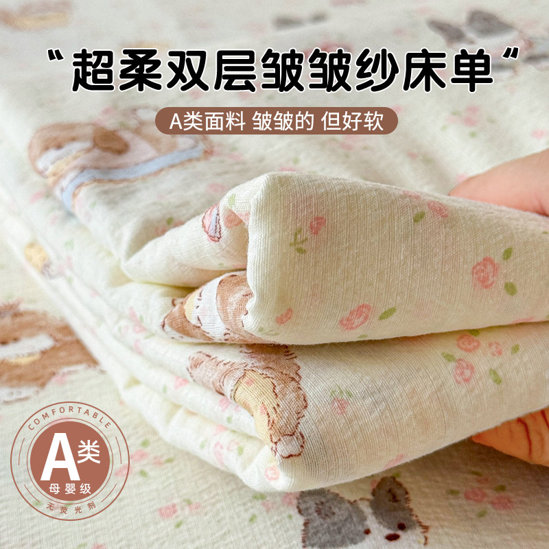 绵绵小熊猫 原创全棉双层纱床单床笠单件被单柔软纱布A类母婴级