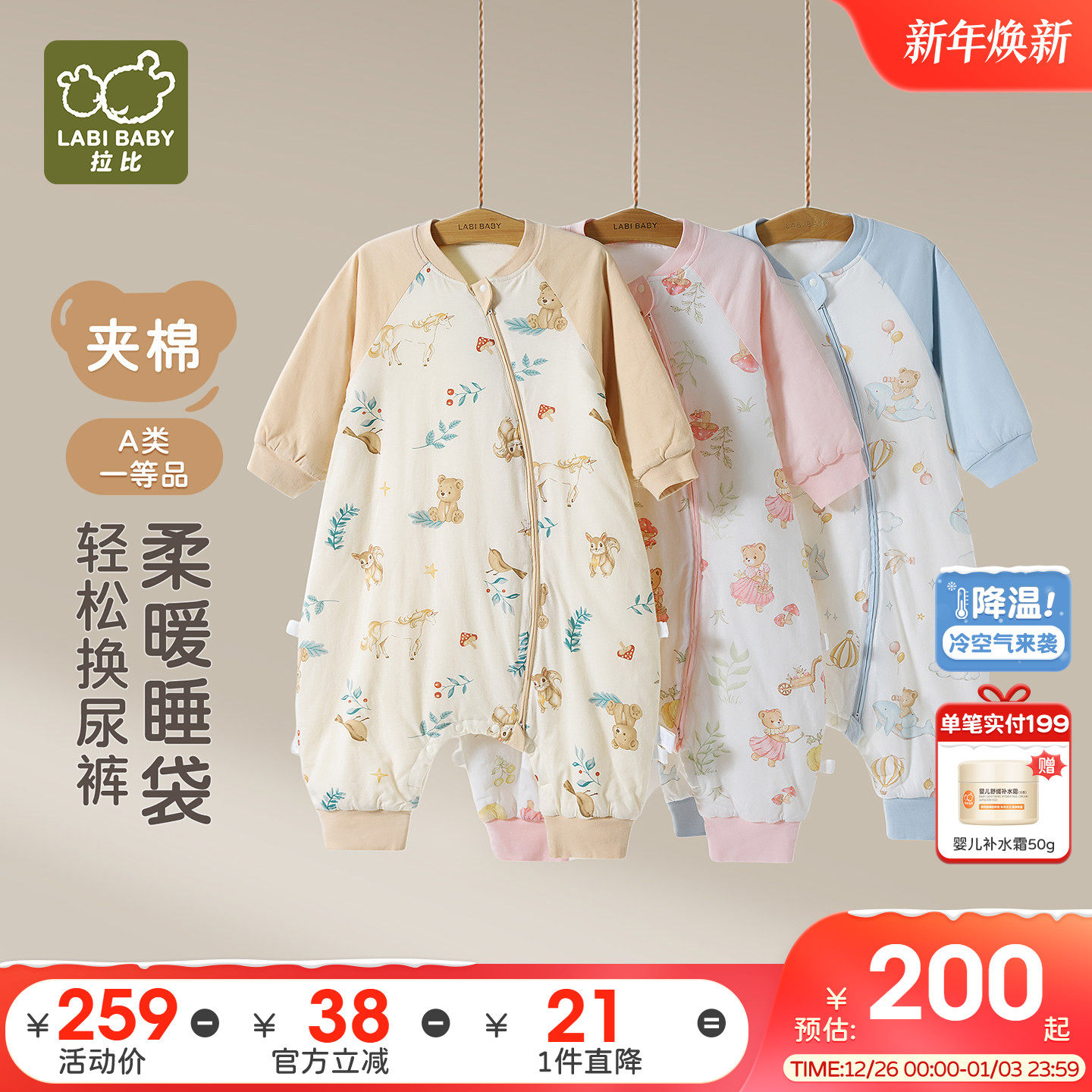 拉比婴儿睡袋连体衣160g棉夹棉秋冬新品保暖分腿式防踢被睡袋