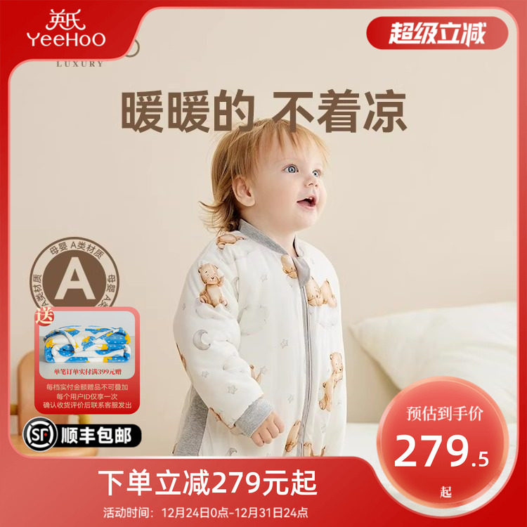 英氏母婴A类发热暖姜竹棉睡袋春秋冬分腿睡袋宝宝儿童防踢被睡袋