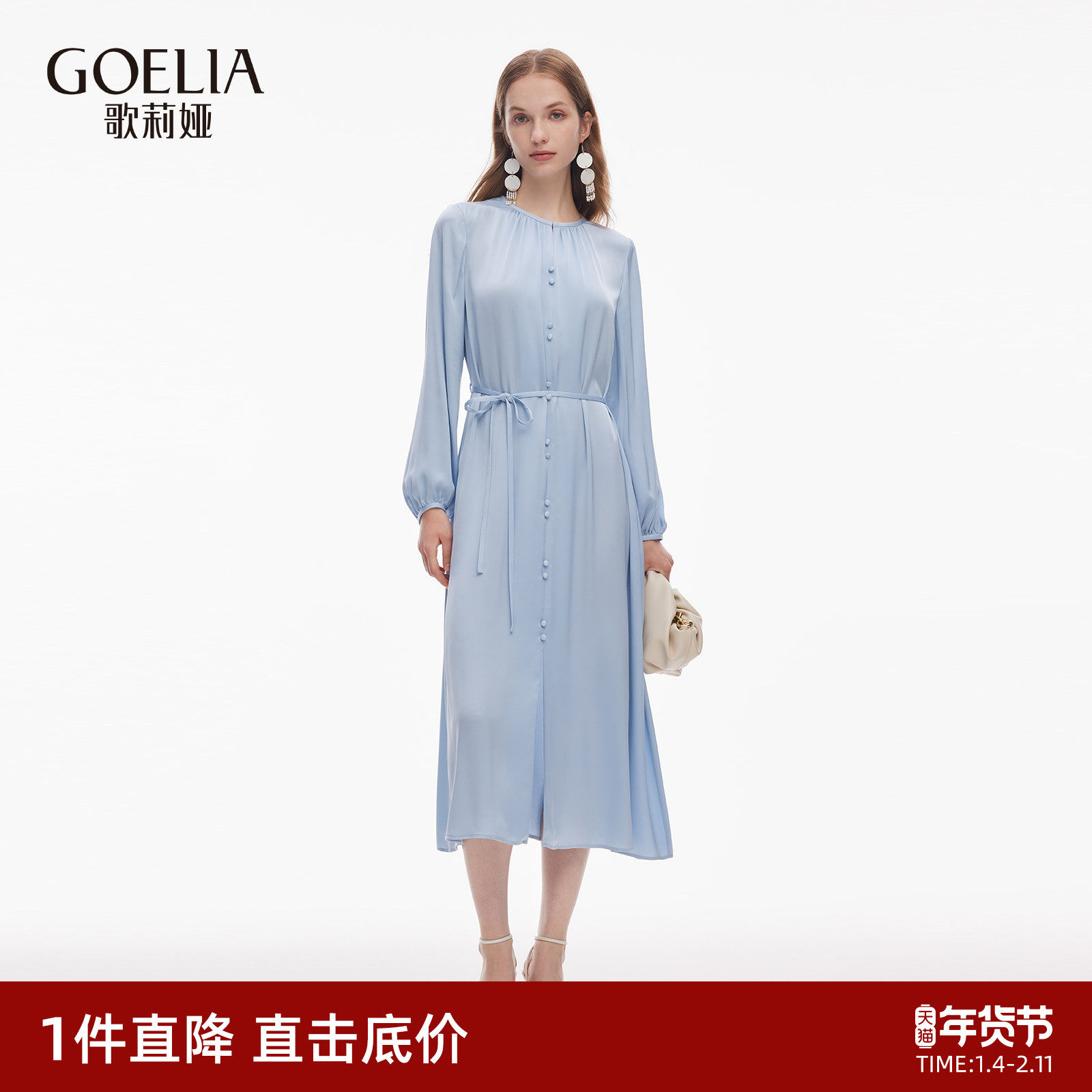 莱芙艾迪儿品牌女装早秋今年流行的新款连衣裙初秋中长袖衬衫长裙