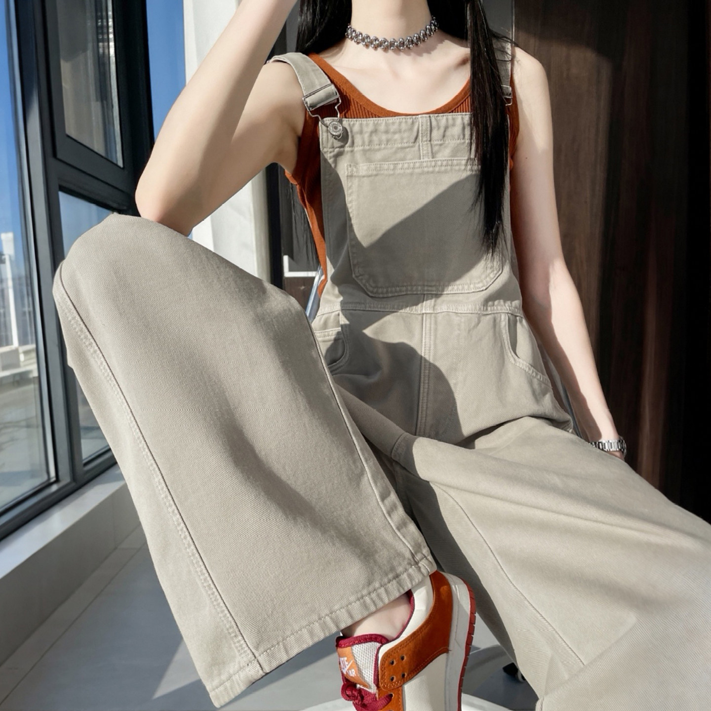 - 高腰牛仔背带裤
