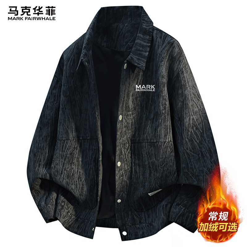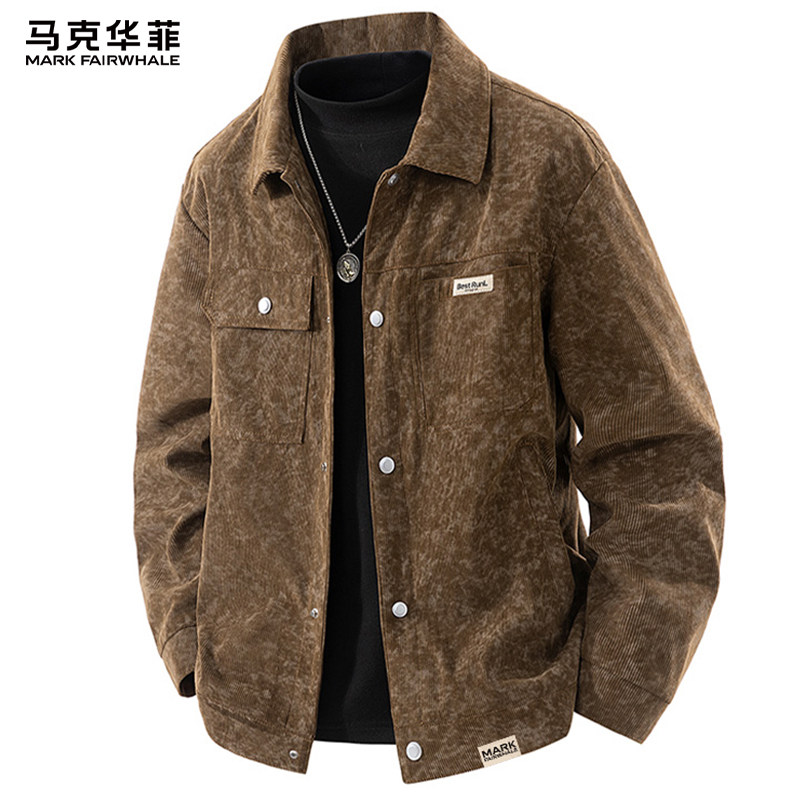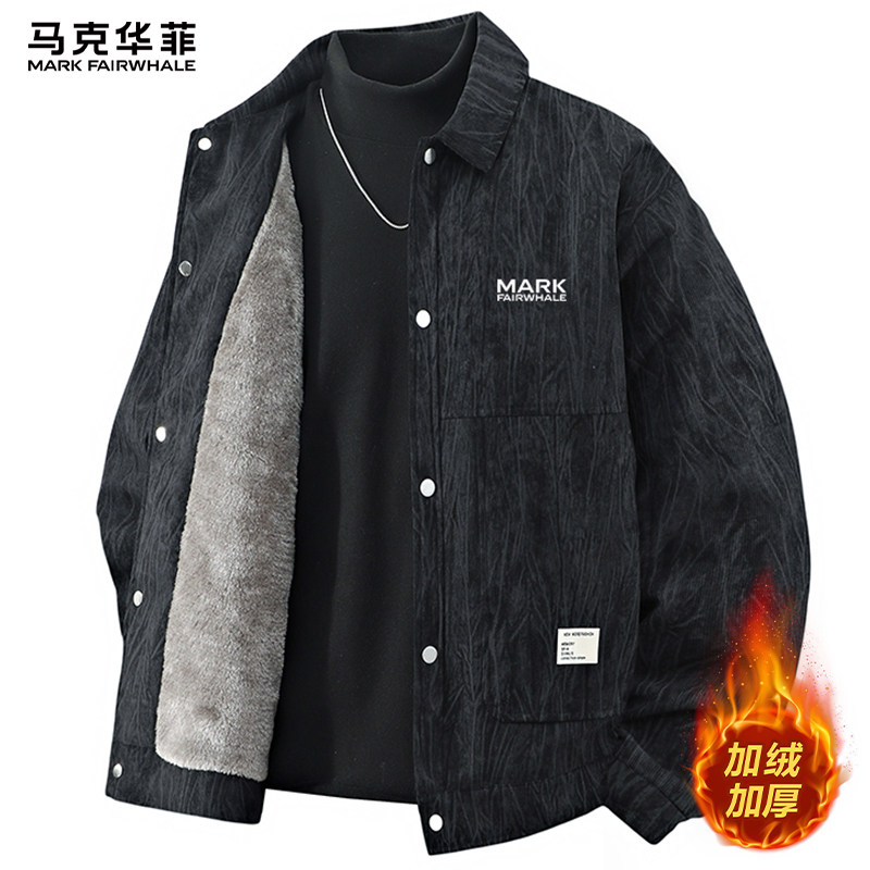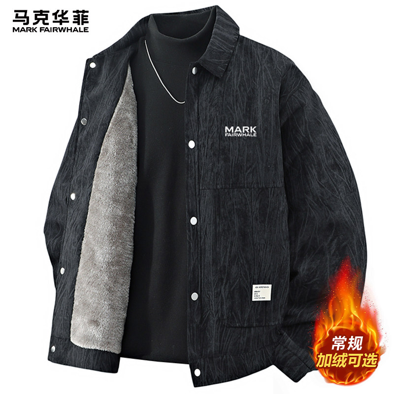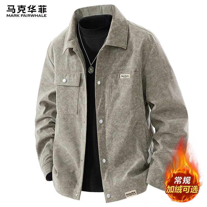 马克华菲灯芯绒翻领外套男士2026新款冬季加绒加厚美式夹克男款