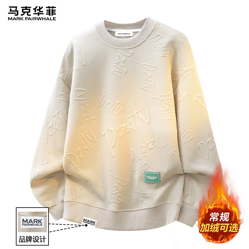马克华菲卫衣男款2026新款秋冬季重磅圆领加绒加厚长袖美式上衣服