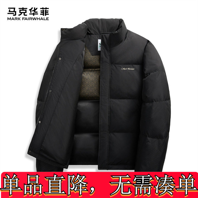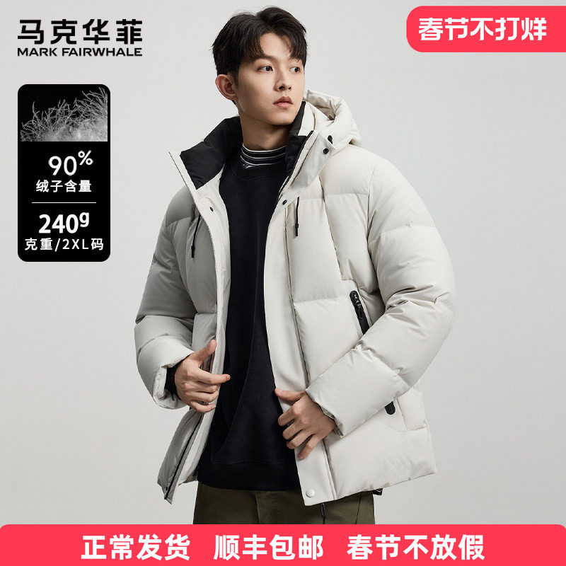 马克华菲2025冬季新款男士连帽羽绒服白色加厚保暖短款外套男装