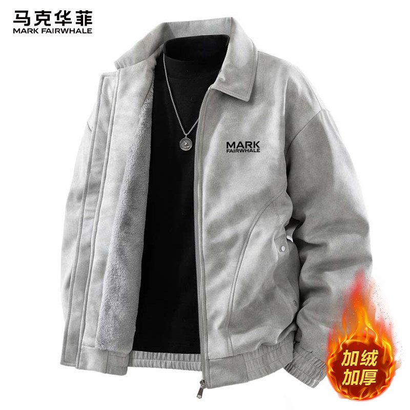 马克华菲麂皮绒男士外套秋冬季加绒加厚2026新款上衣男款美式夹克