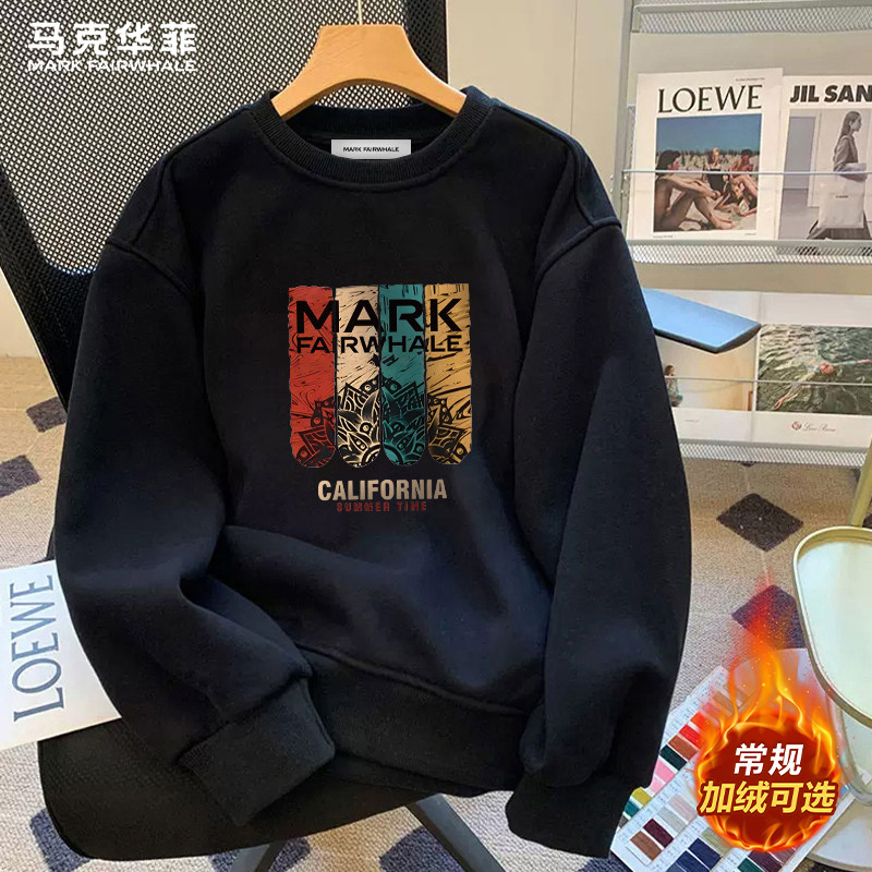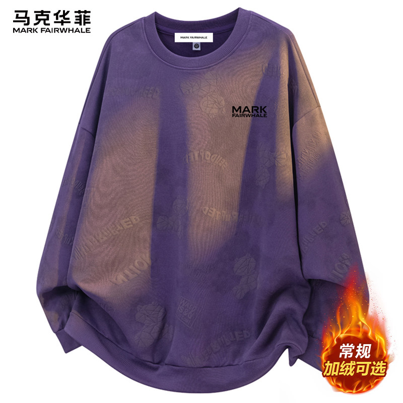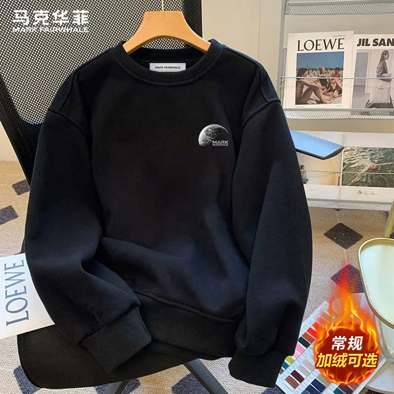 马克华菲美式潮牌圆领卫衣男款2026新款加绒加厚男士长袖上衣t恤