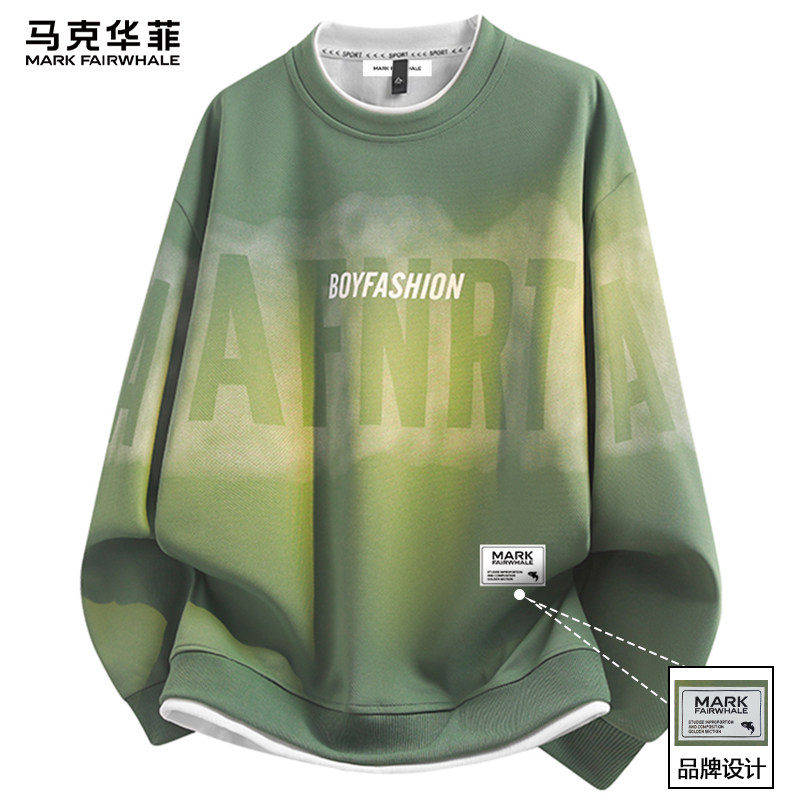 马克华菲绿色无帽卫衣圆领长袖上衣春秋新款2026百搭潮流衣服男装