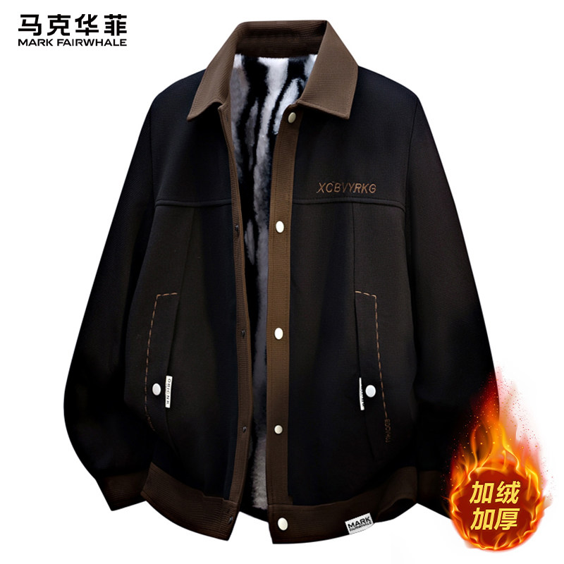 马克华菲美式提花男士翻领夹克外套2026新款加绒加厚男款保暖上衣