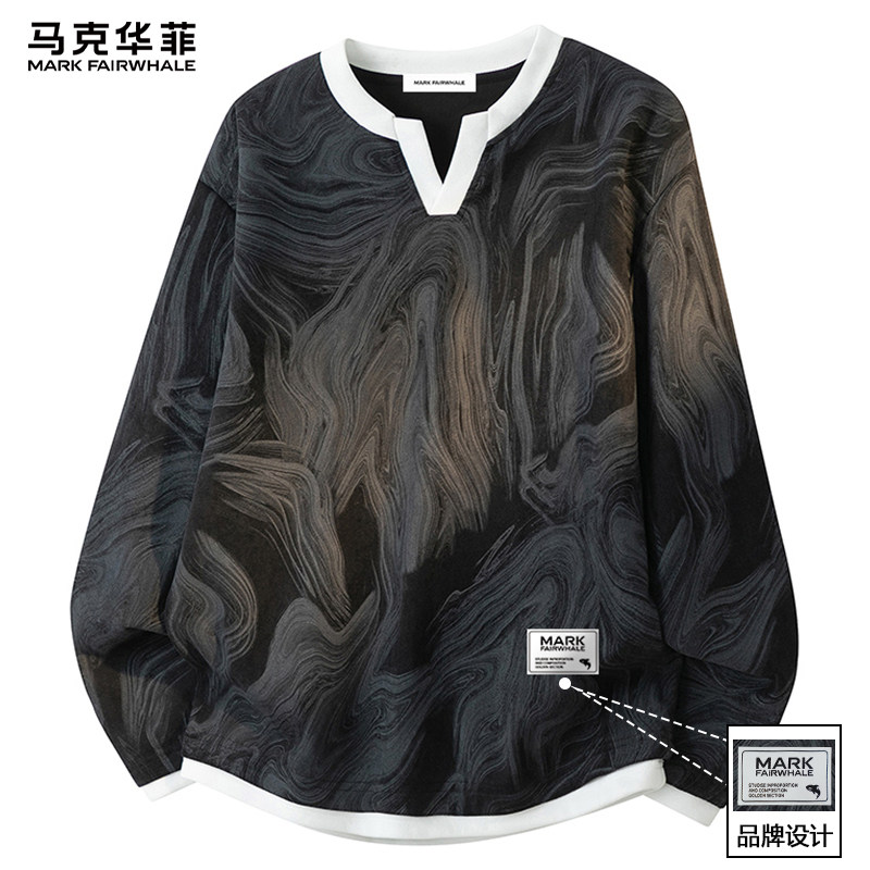 马克华菲假两件小V领男士卫衣2026新款扎染男款潮帅气时髦上衣服