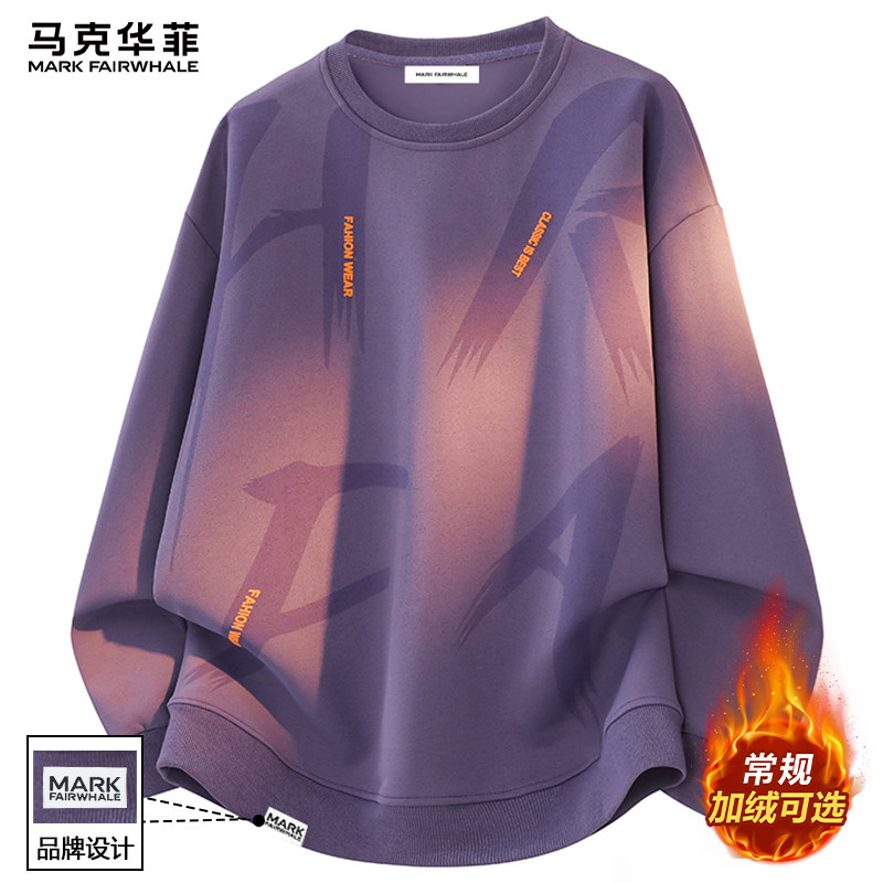 马克华菲美式潮牌圆领卫衣男款2026秋冬新款加绒加厚男士长袖上衣