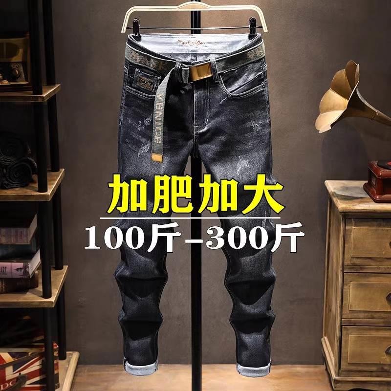超高弹力牛仔裤男胖子春秋加肥加大码加绒小脚裤宽松显瘦哈伦裤子