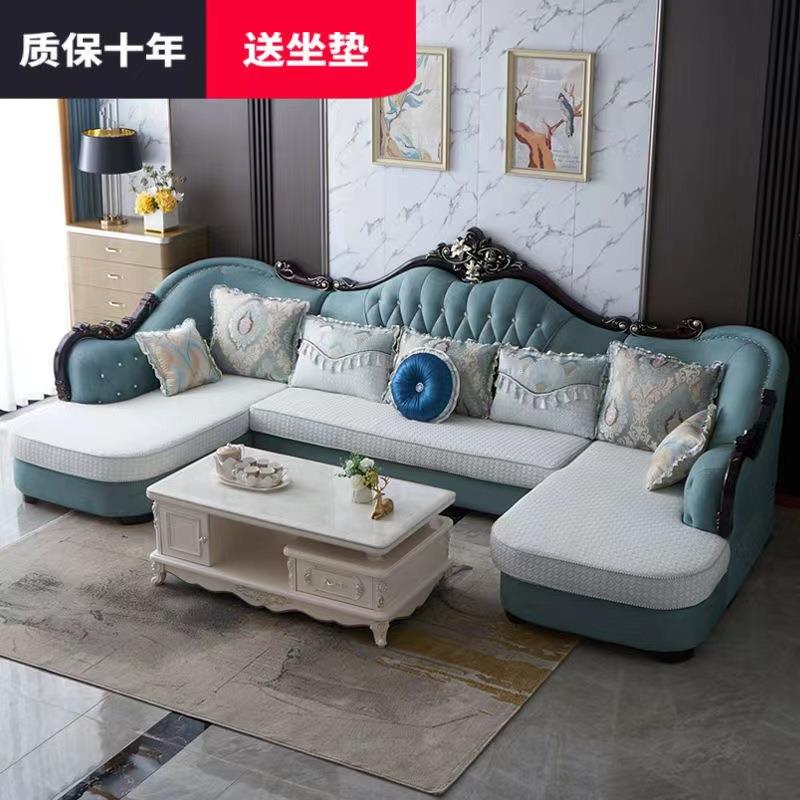 欧式布艺沙发组合U型双贵妃实木大小户型轻奢客厅整装沙发可拆洗