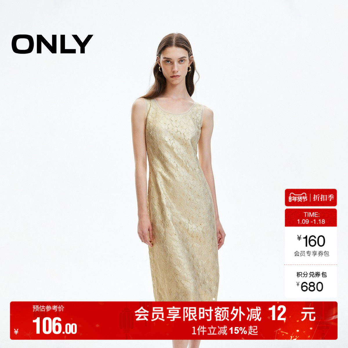 ONLY夏季时尚精致欧根纱开衩收腰显瘦连衣裙女|124307050