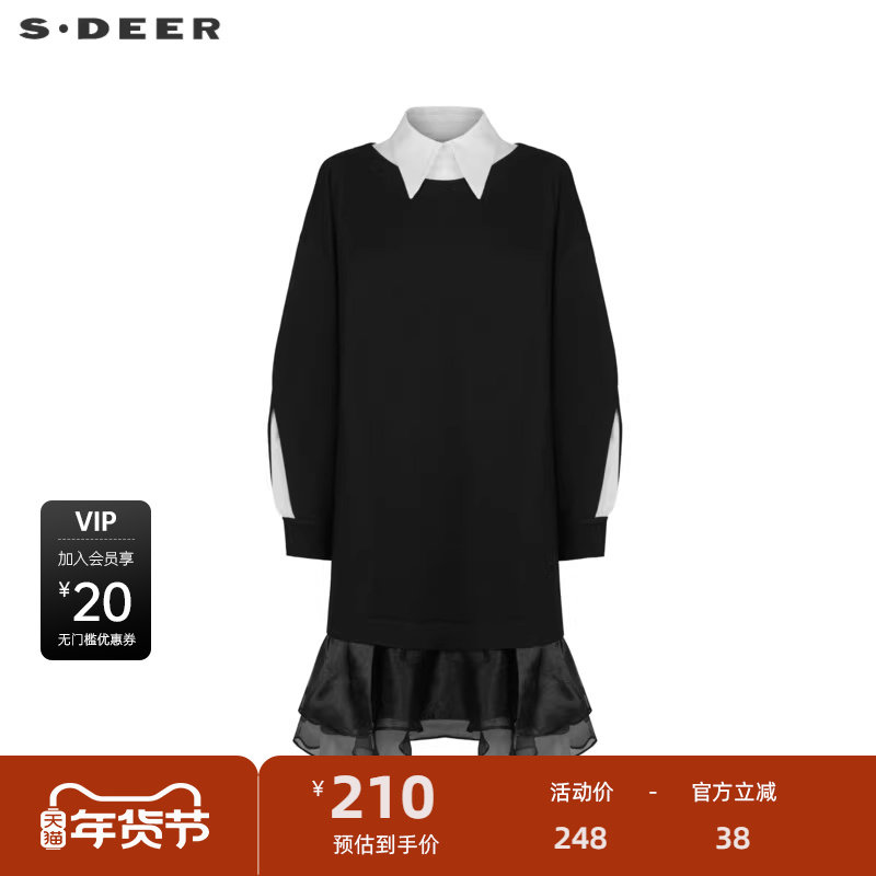 sdeer圣迪奥春装女装撞色假两件欧根纱拼接连衣裙S241Z1222