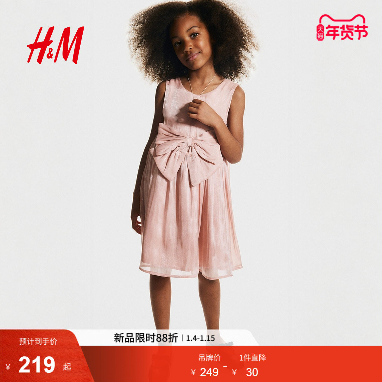 HM童装儿童女童连衣裙新款红色拜年服新年欧根纱连衣裙1308334