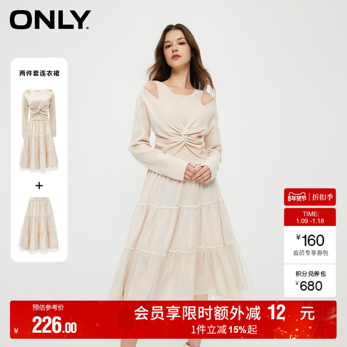 ONLY2025秋季新款优雅欧根纱拼接粗花呢小香风套装短裙连衣裙女