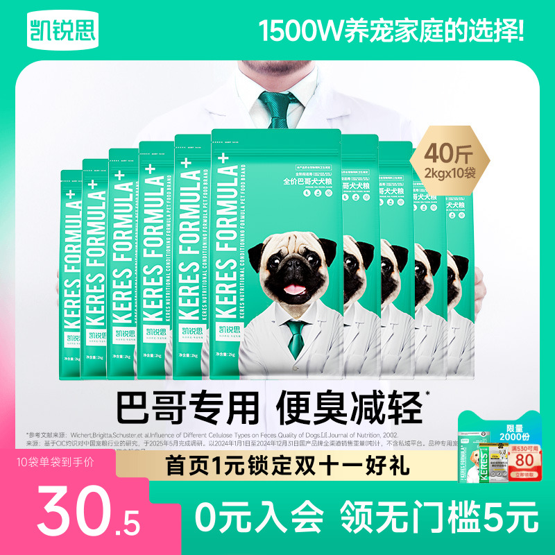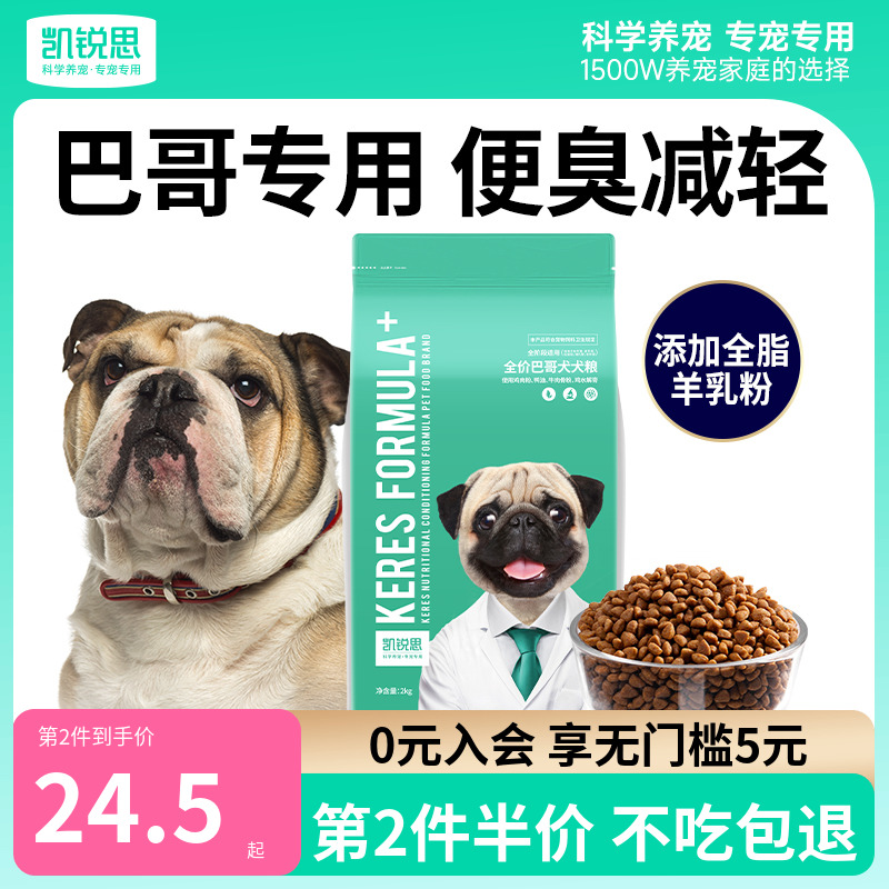 凯锐思巴哥狗粮八哥犬幼犬成犬专用巴哥犬狗粮小型犬靓毛2kg4斤