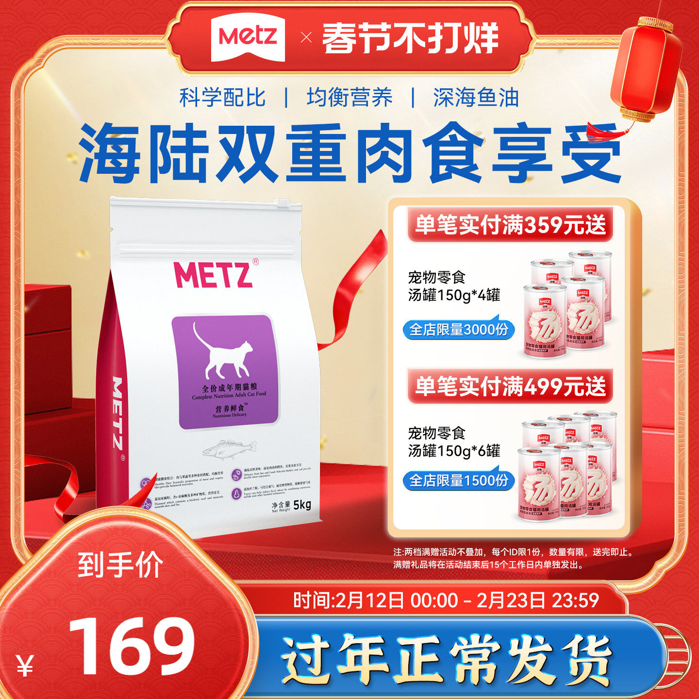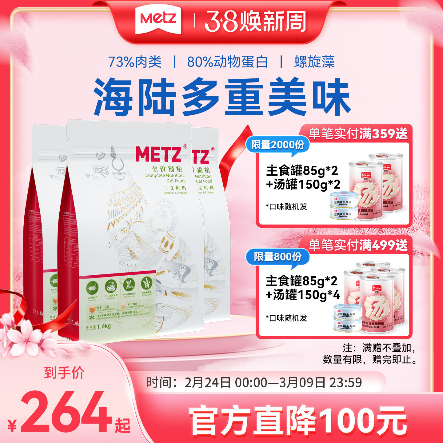 METZ玫斯营养鲜食全价成年期猫粮成猫通用型猫咪主粮海陆双拼猫粮