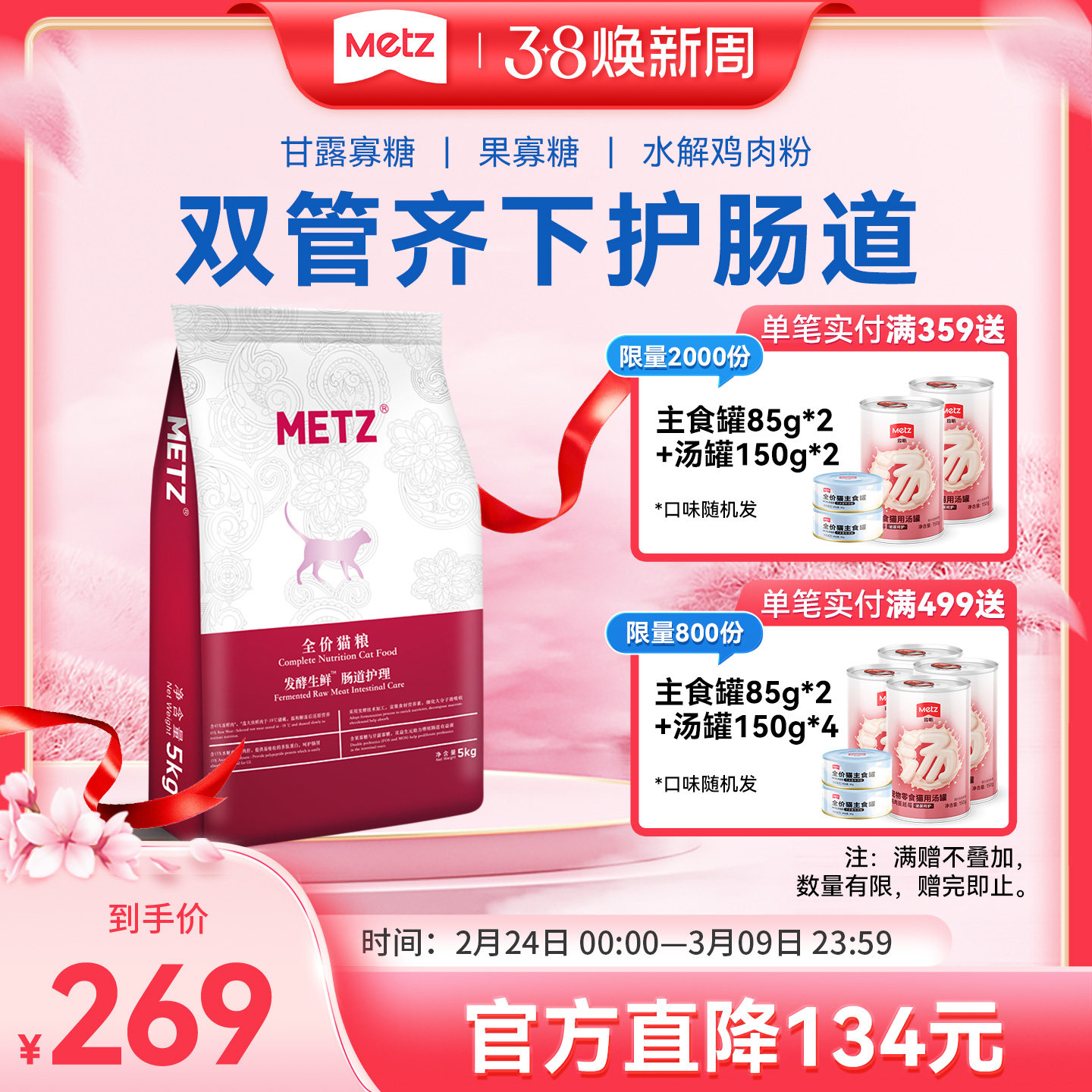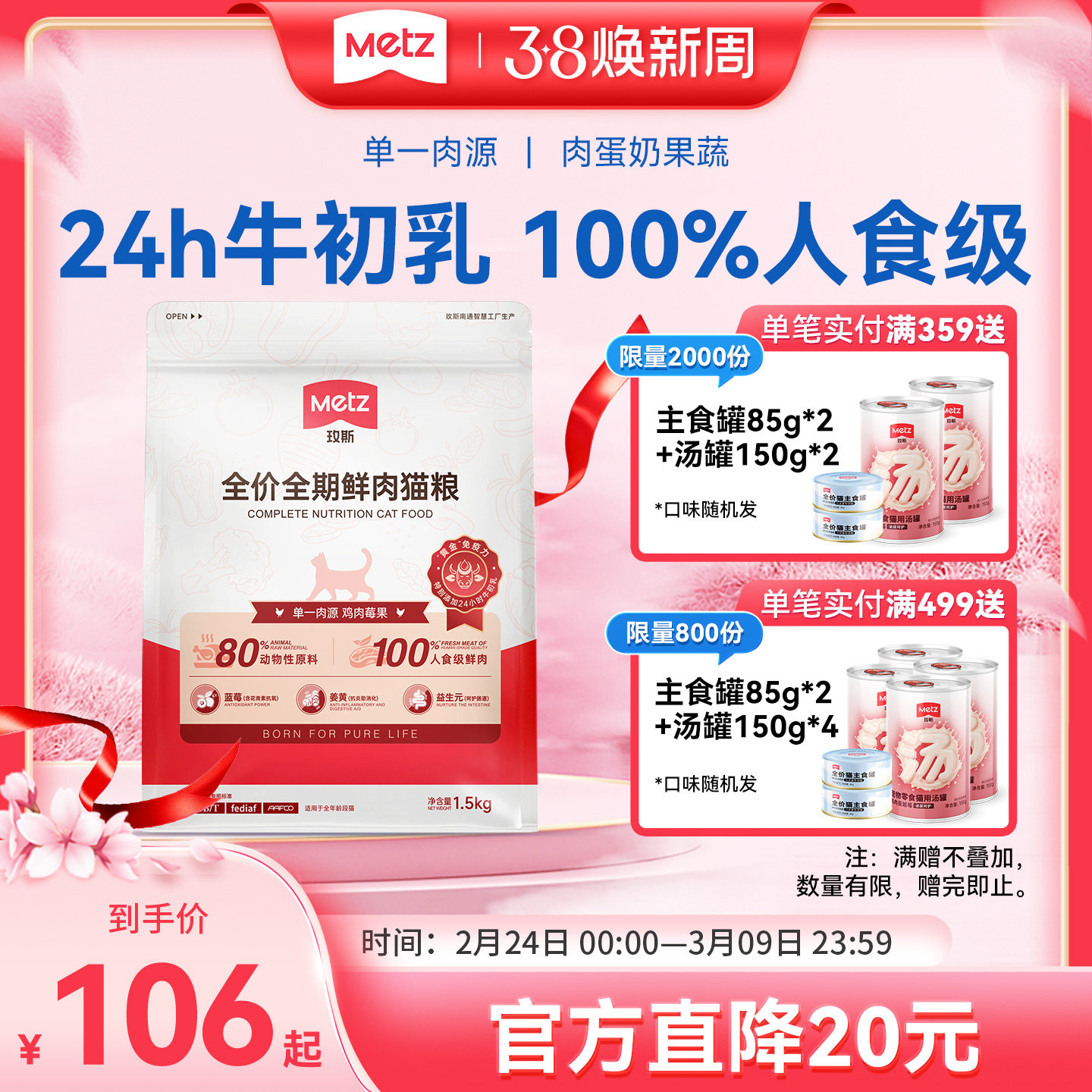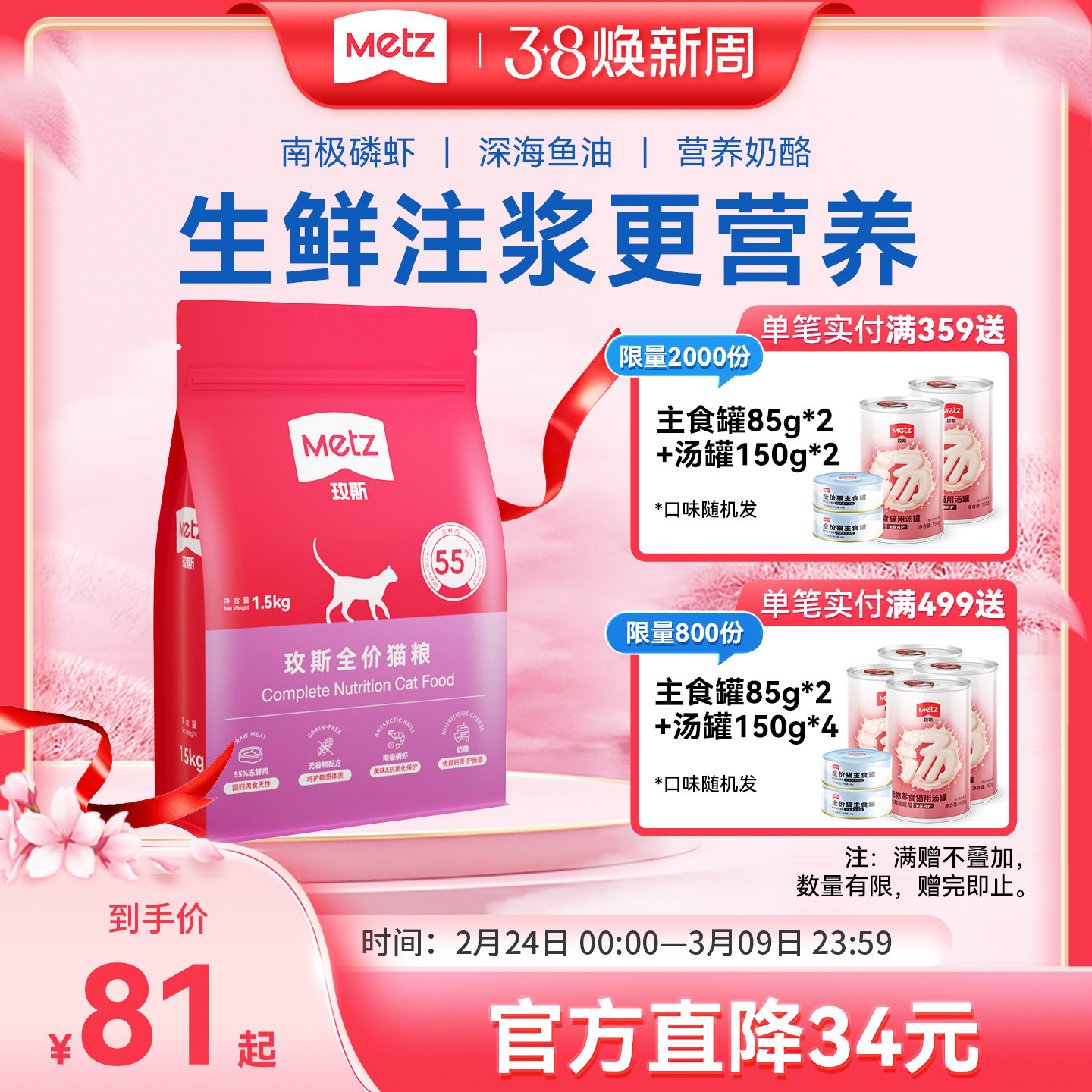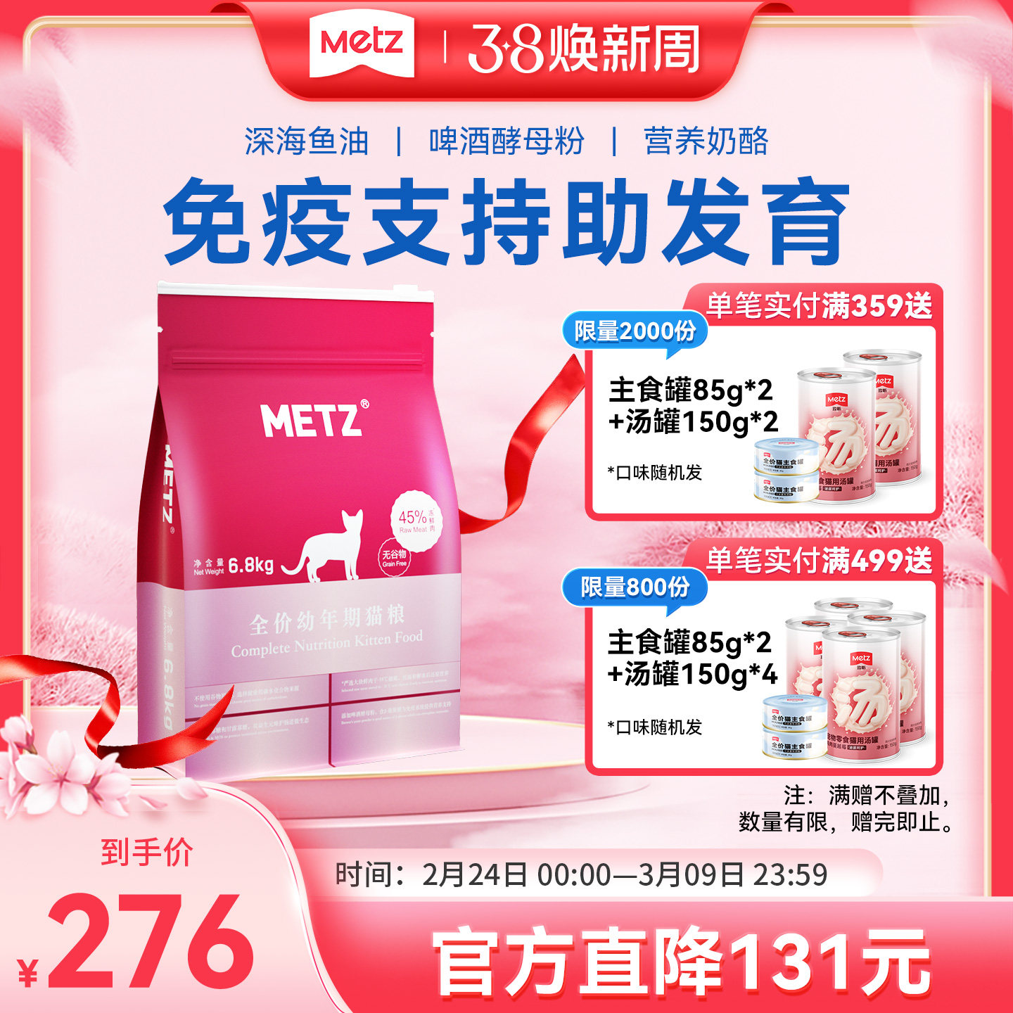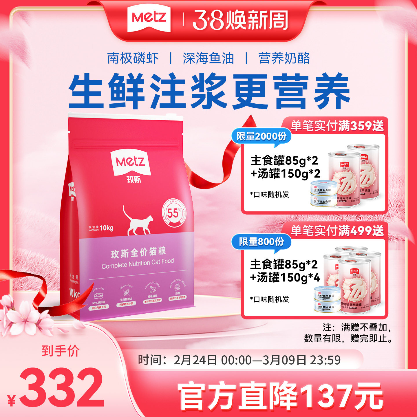 metz玫斯猫粮55%鲜肉幼猫粮无谷生鲜注浆全价猫粮成猫通用猫主粮