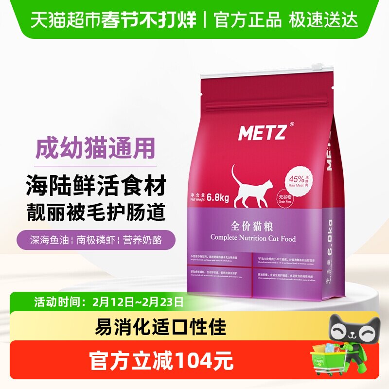 metz玫斯猫粮6.8kg幼猫全猫粮无谷成猫粮旗舰店同款全期全价猫粮