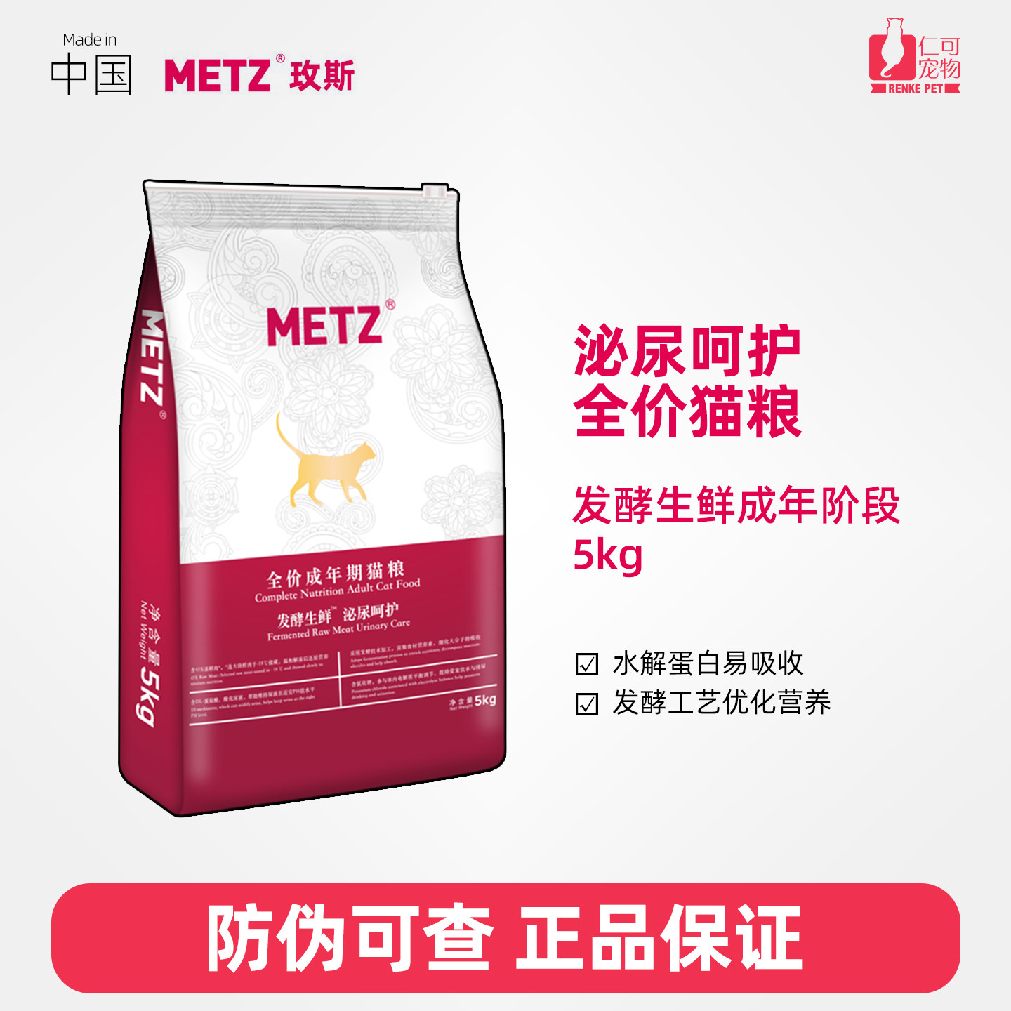 仁可宠物 玫斯猫粮METZ发酵生鲜泌尿道护理营养全价低敏成猫粮5kg