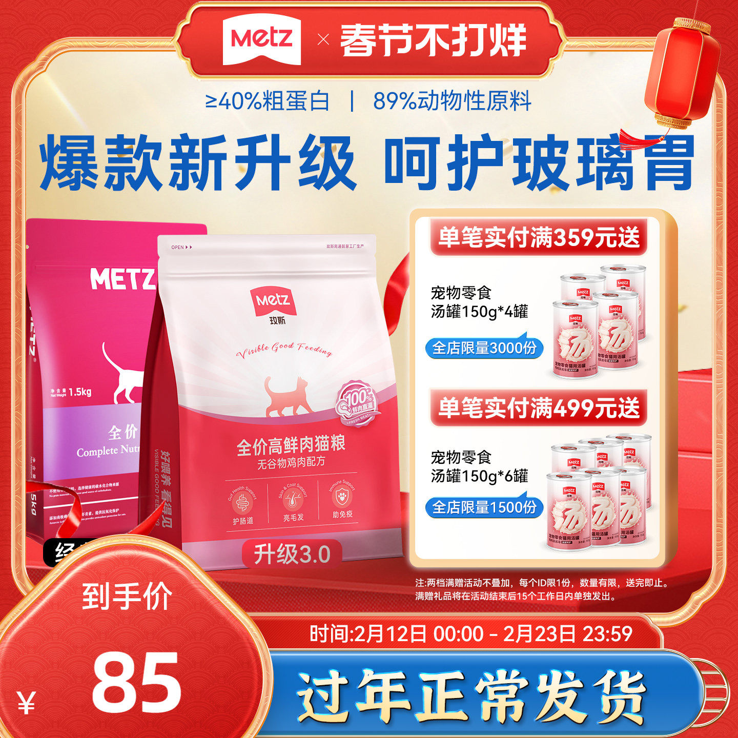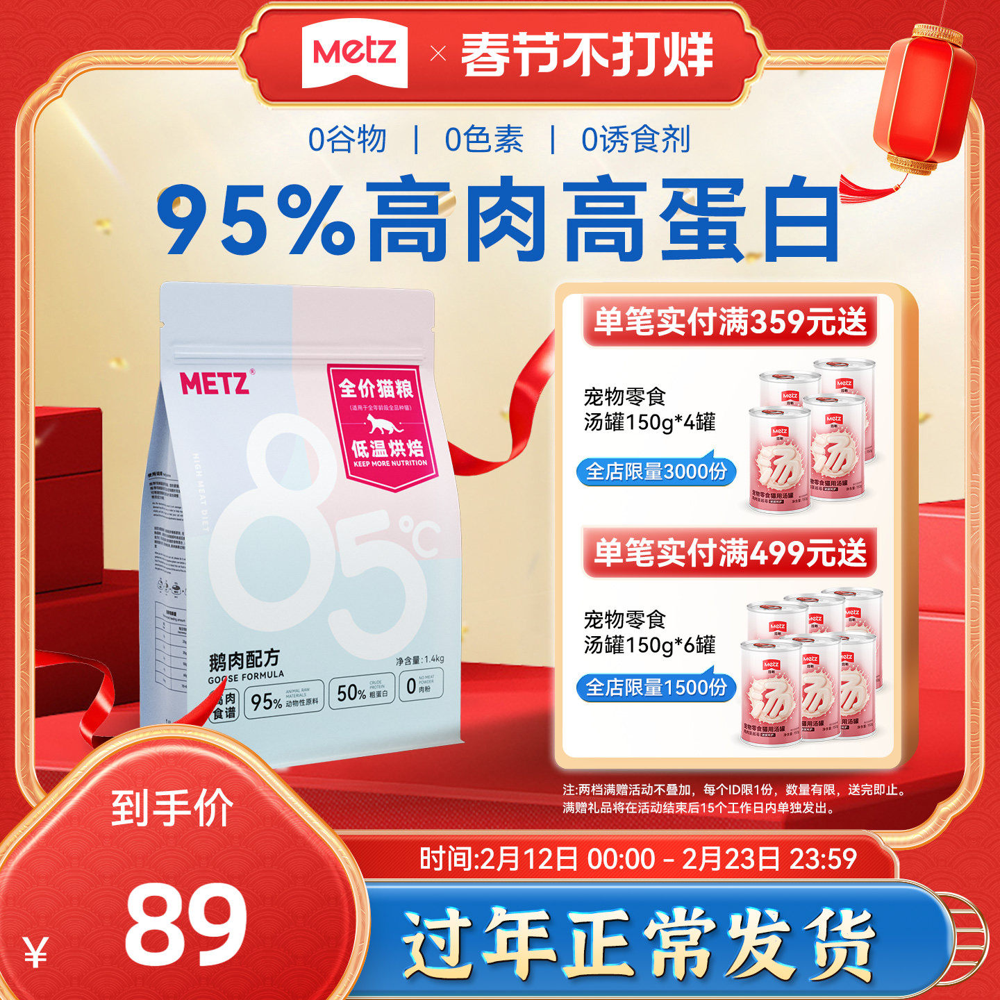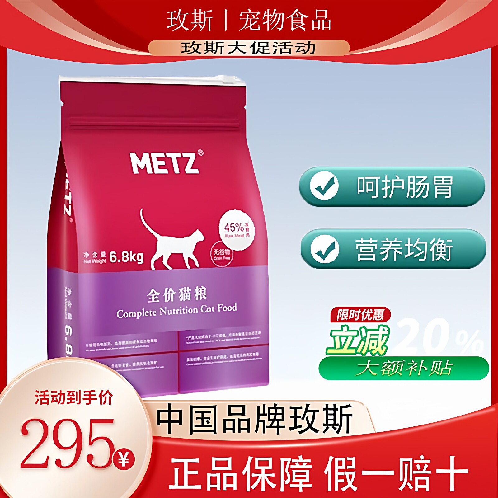 玫斯猫粮全价成猫幼猫通用全期粮METZ无谷生鲜梅斯玖斯官方旗舰款