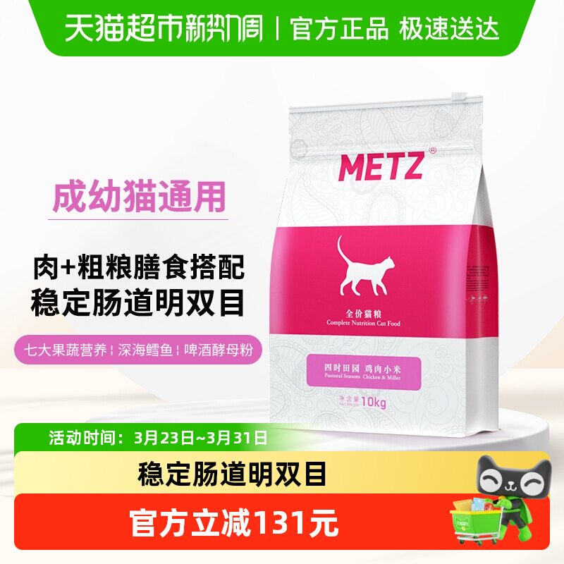 METZ/玫斯四时田园鸡肉小米全价年龄段通用营养增肥猫粮20斤10kg