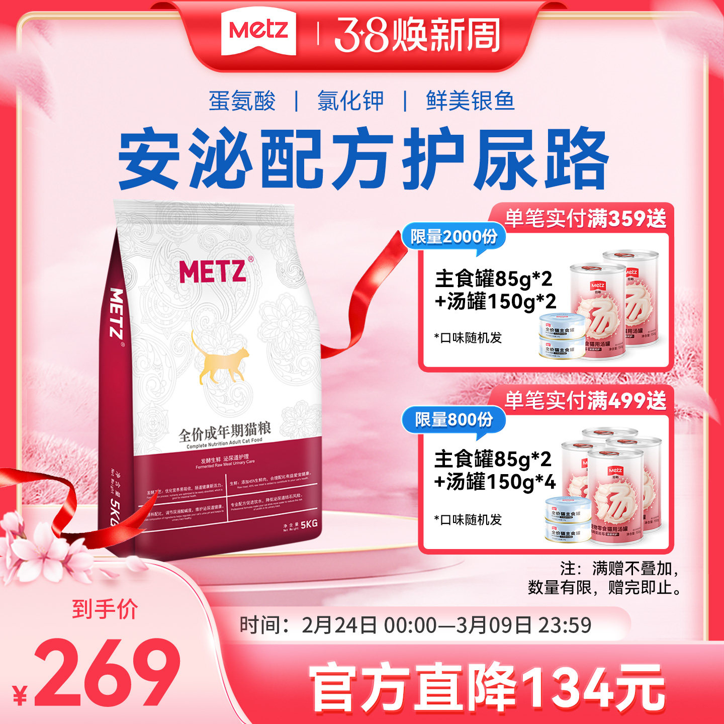 玫斯猫粮10kg无谷全价 metz猫咪粮pro升级款成猫幼猫猫主食6.8kg